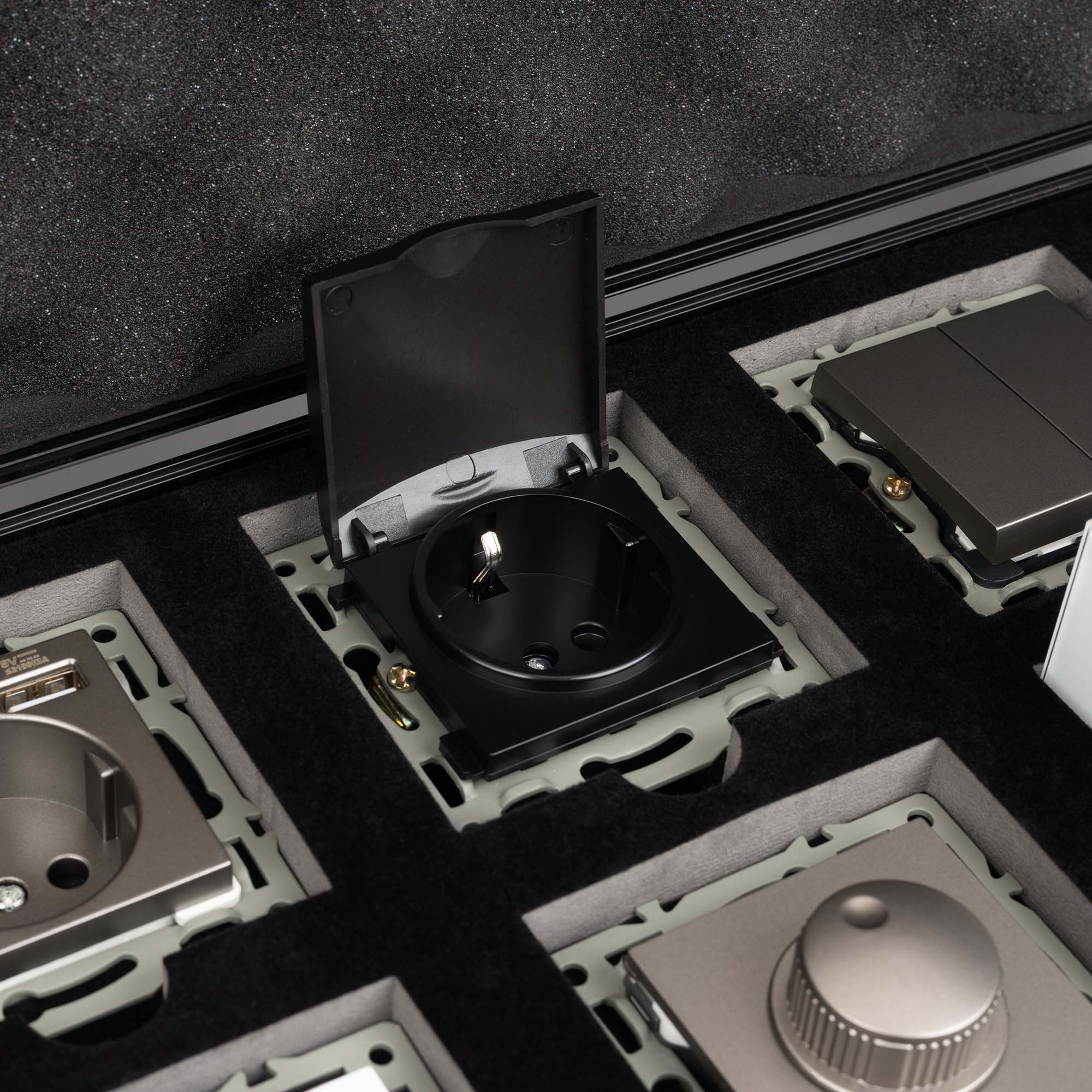 Ячейки для размещения: 8 мест под механизмы и 16 мест под однопостовые рамки.