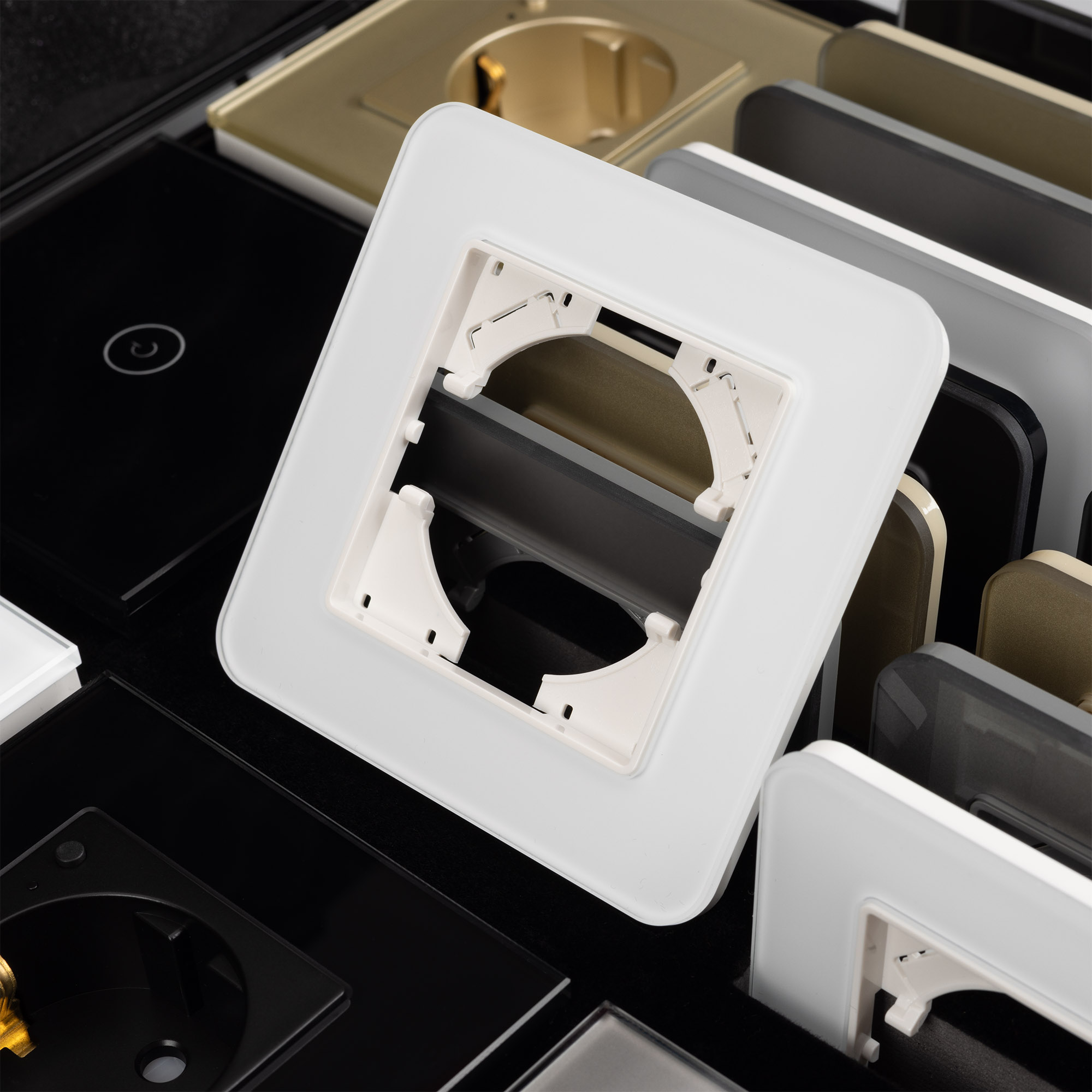 Серия AKIRYСерия OMALIСерия PERIOСерия XSILOСерия NOBEСерия TENDOGLARE Стеклянные рамки и панелиPRESTO Алюминиевые рамкиVERSA Пластиковые рамки Механизмы VERSA-GLARE-PRESTOМонтажные коробки и аксессуары