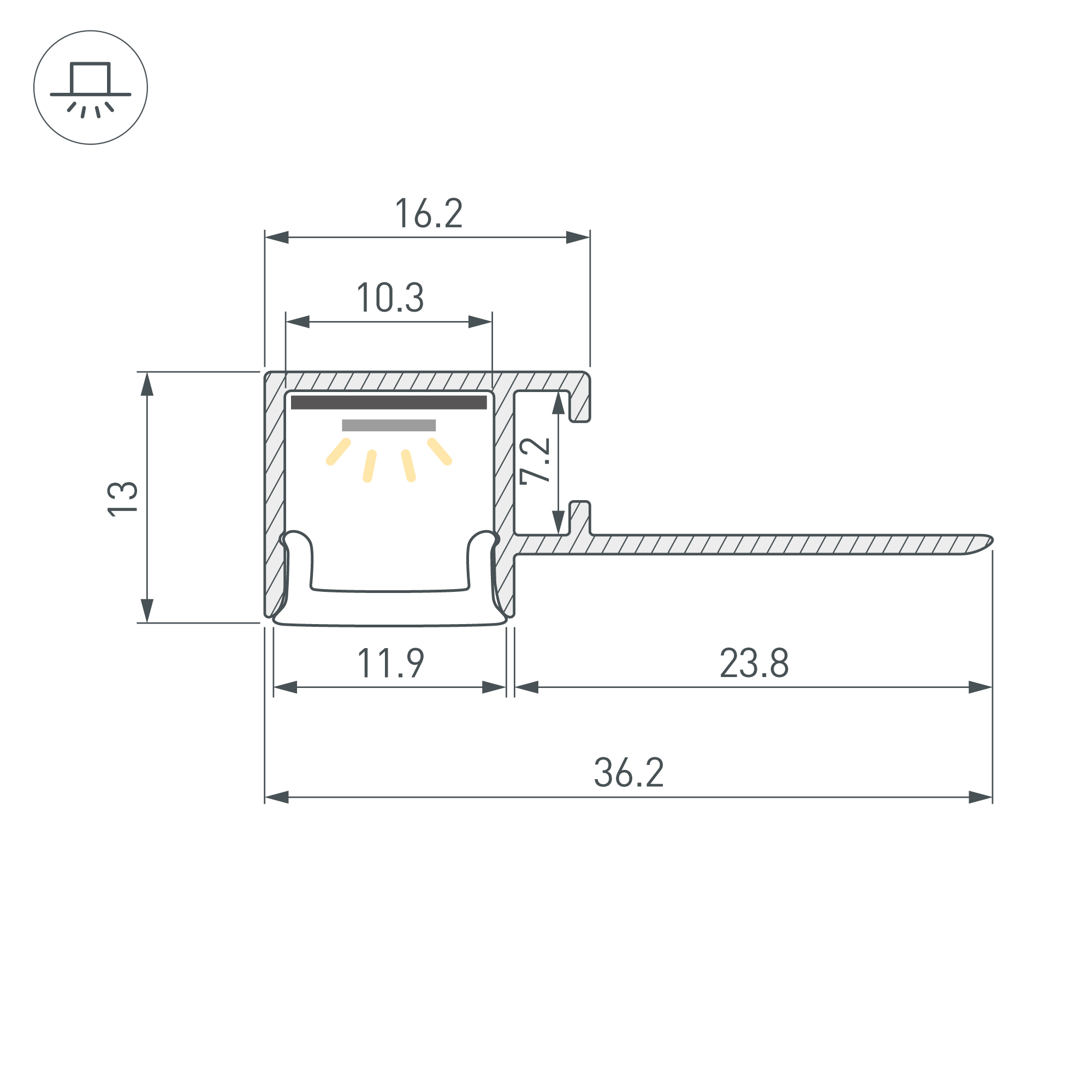 Поставляется в комплекте с мягкой прокладкой для защиты профиля от грязи и пыли.