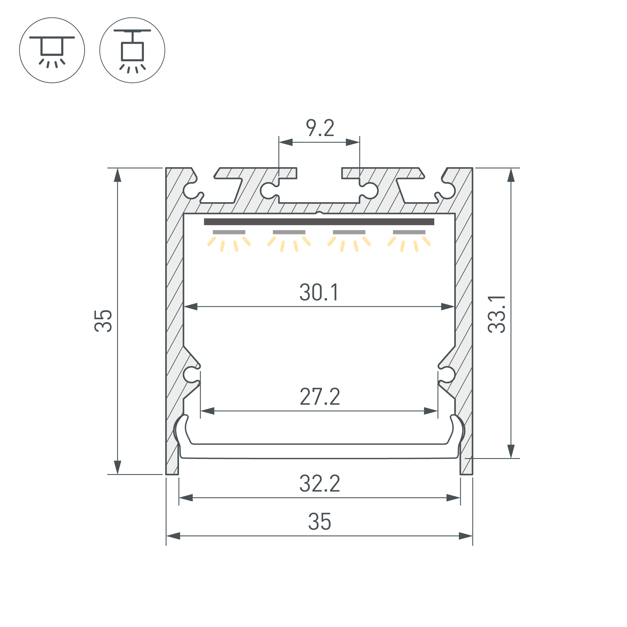 Для прямоугольных светильников |