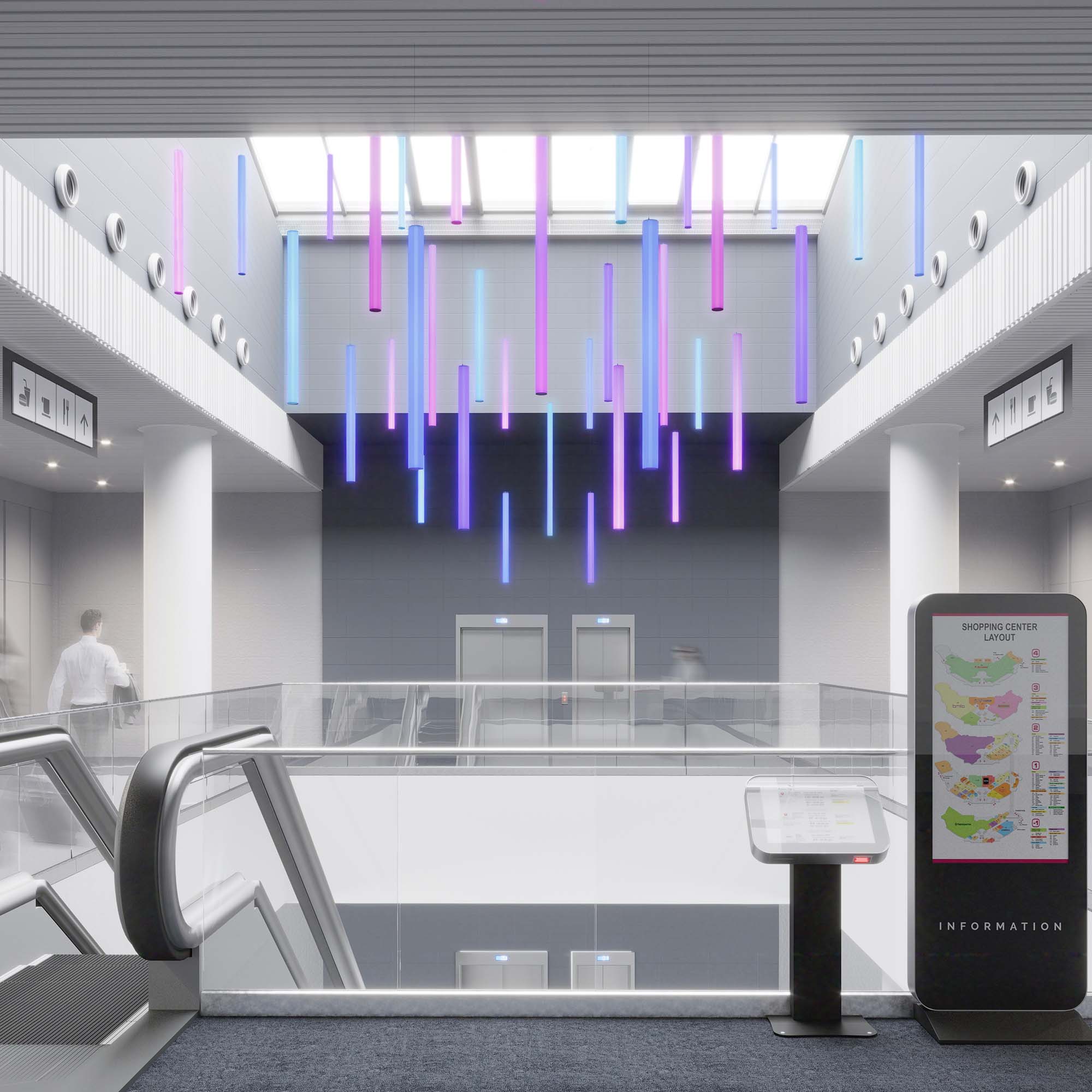 8 одинаковых площадок, 1 общий экран, светят в разные стороны |